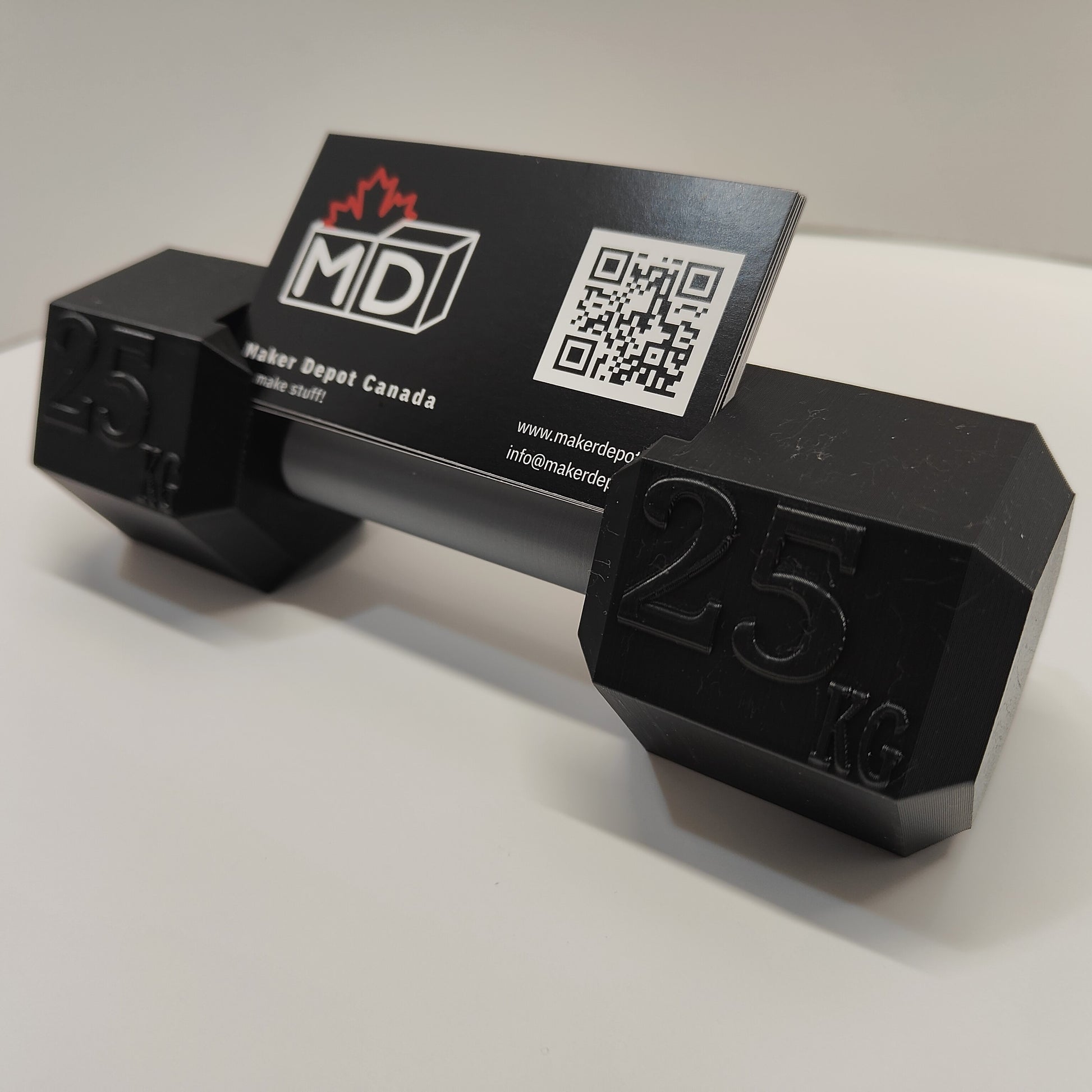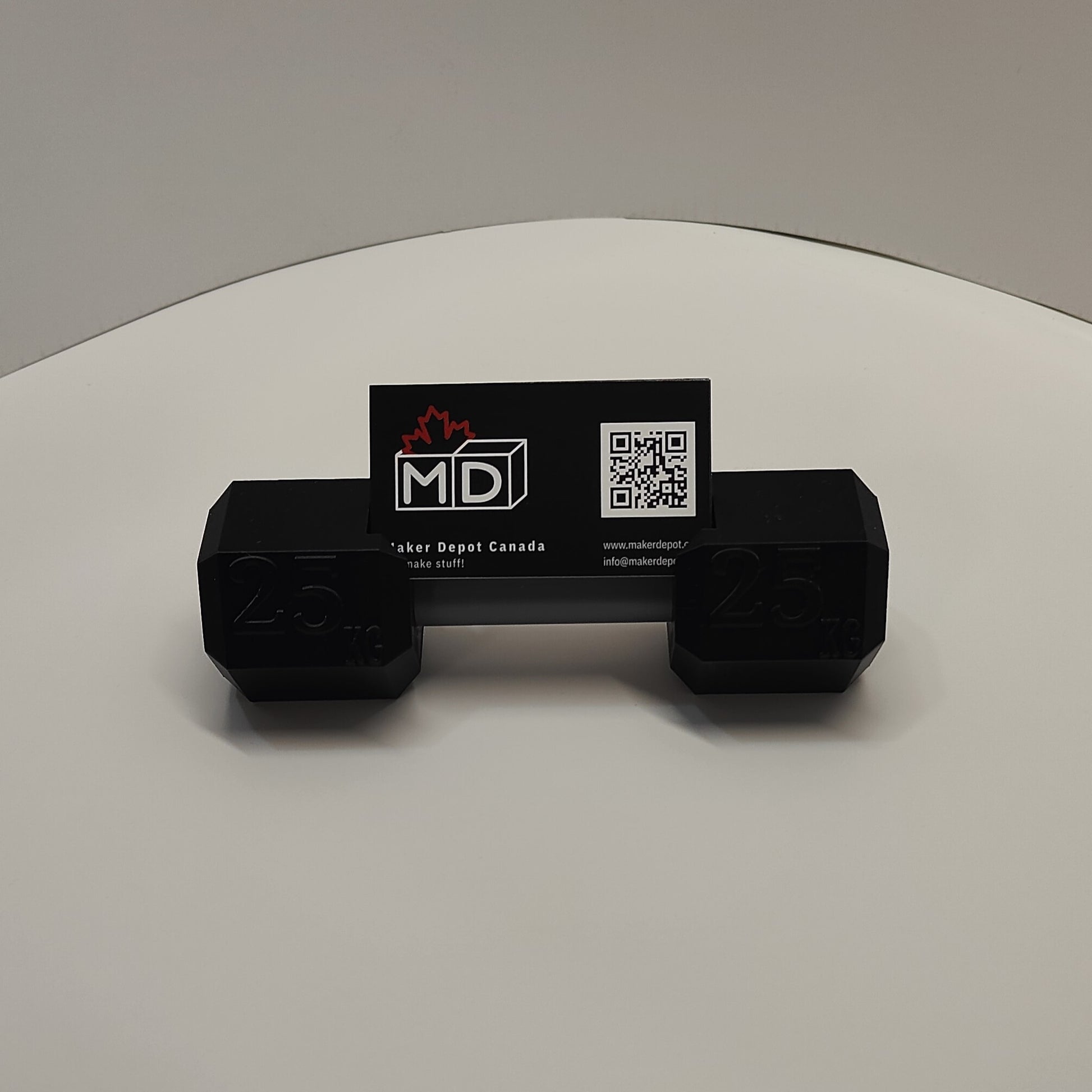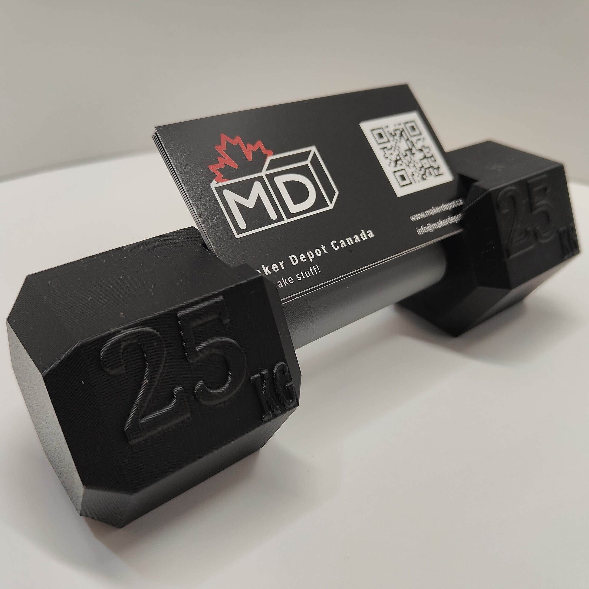 Dumbbell Card Holders perfect for your gym, office or home These are 3D printed using PLA which is a compostable bio plastic. Made in Canada, eh.