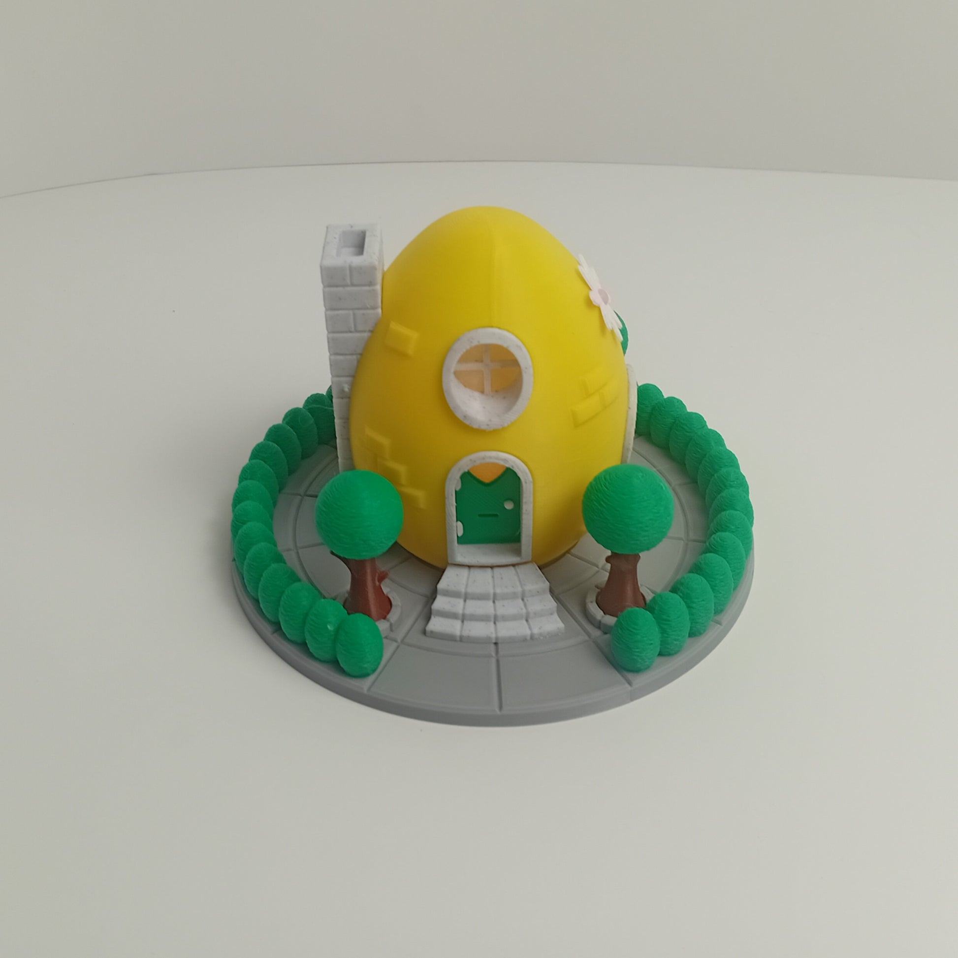 Make a whimsical addition to your garden with this fairy house that looks like an egg! The egg is removable so you can place a tea light inside. The house comes in yellow, blue or pink! Tea light not included with product.
