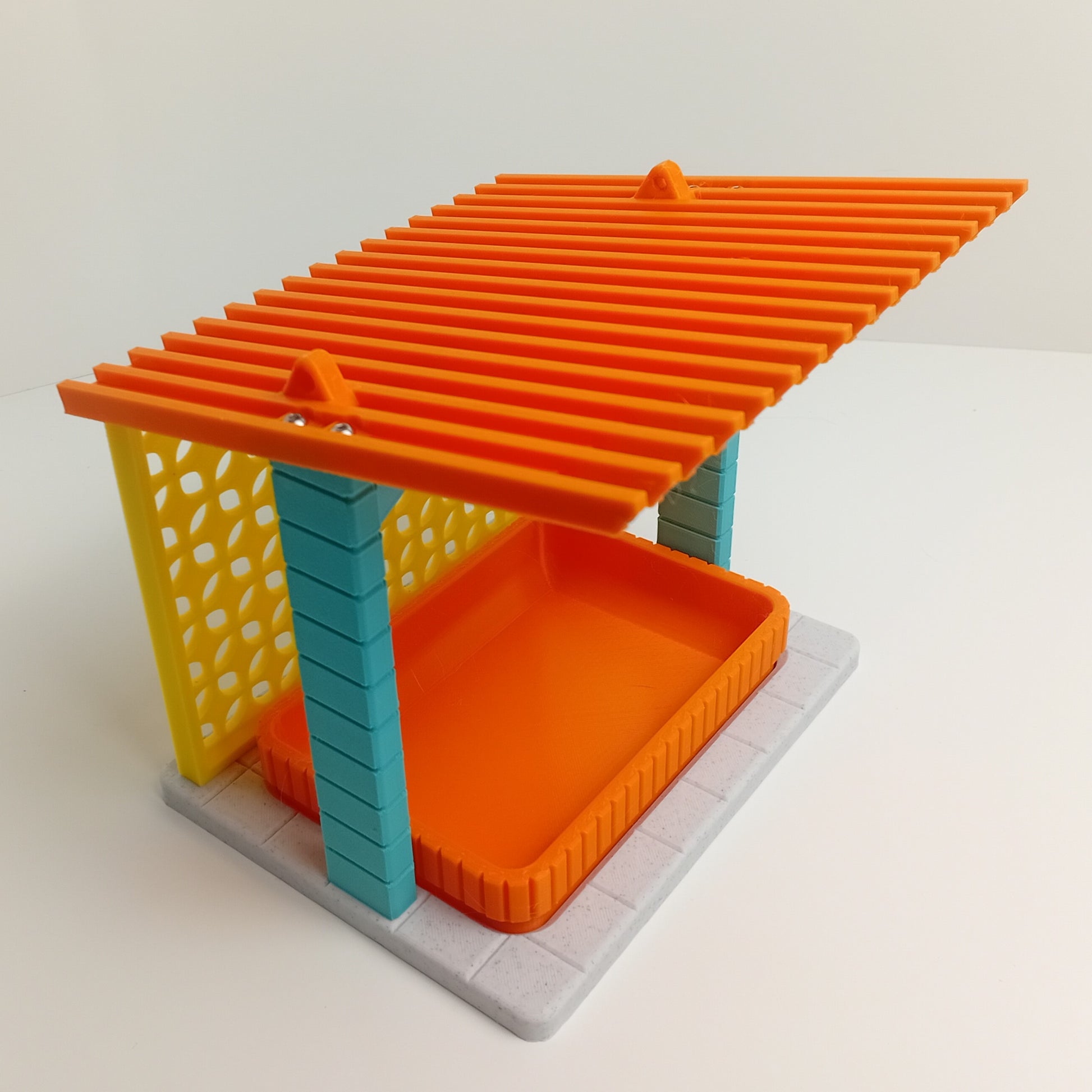 Add this unique, creative and fun 3d printed midcentury modern bird feeder to your garden! This bird feeder has an easily removable trough for your convenience. Hook included for easy installation.