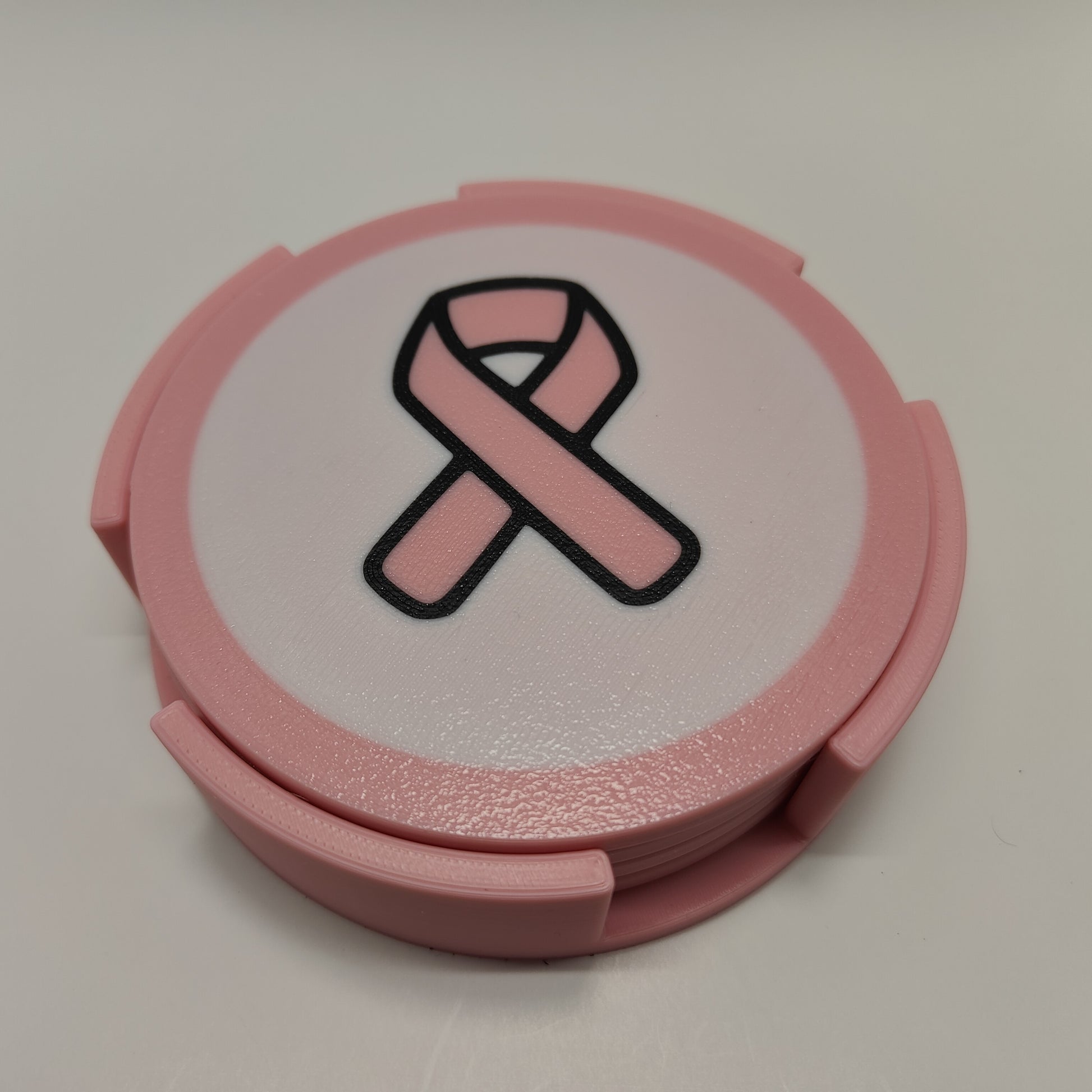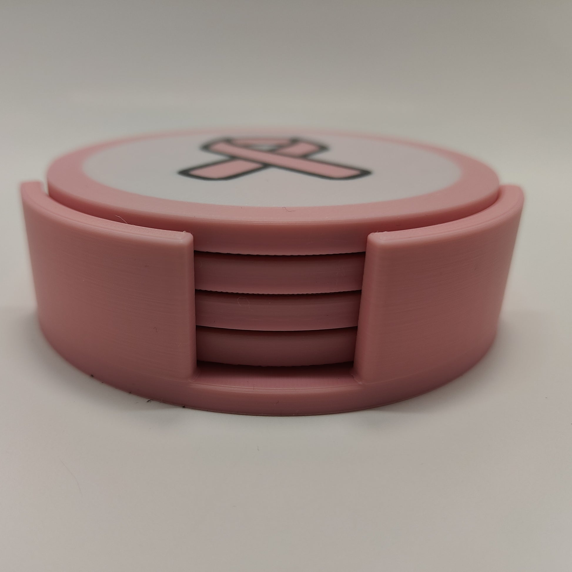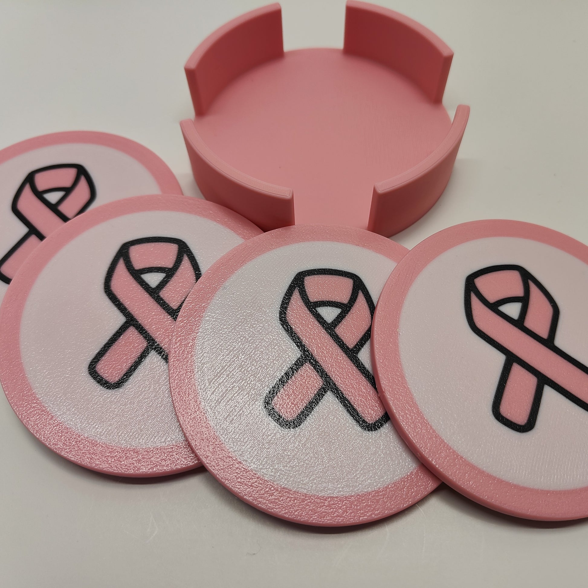 Set of four pink ribbon drink coasters. Proudly show your support for people who have been affected by breast cancer.