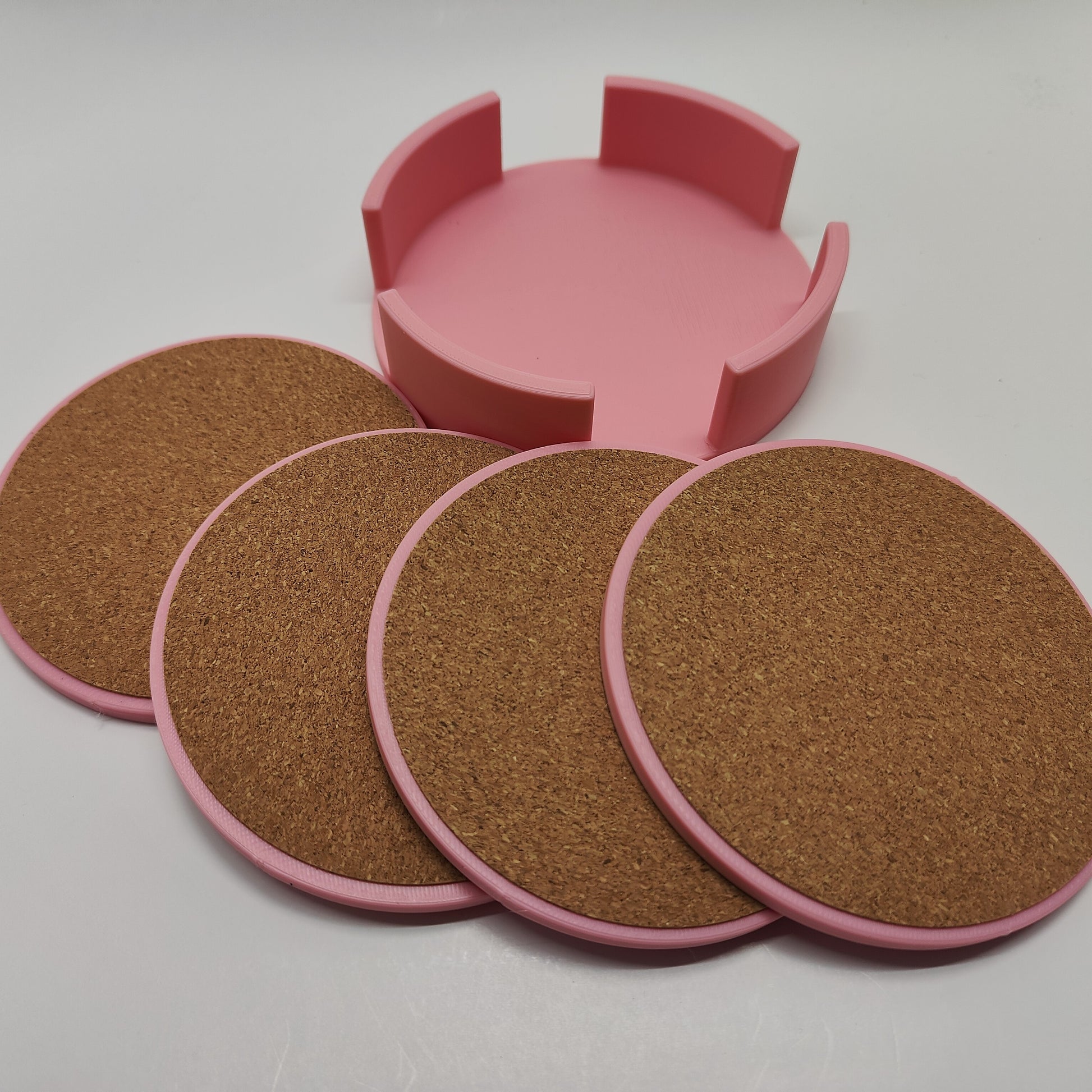 Each coaster has a cork bottom to prevent slipping on hard surfaces.